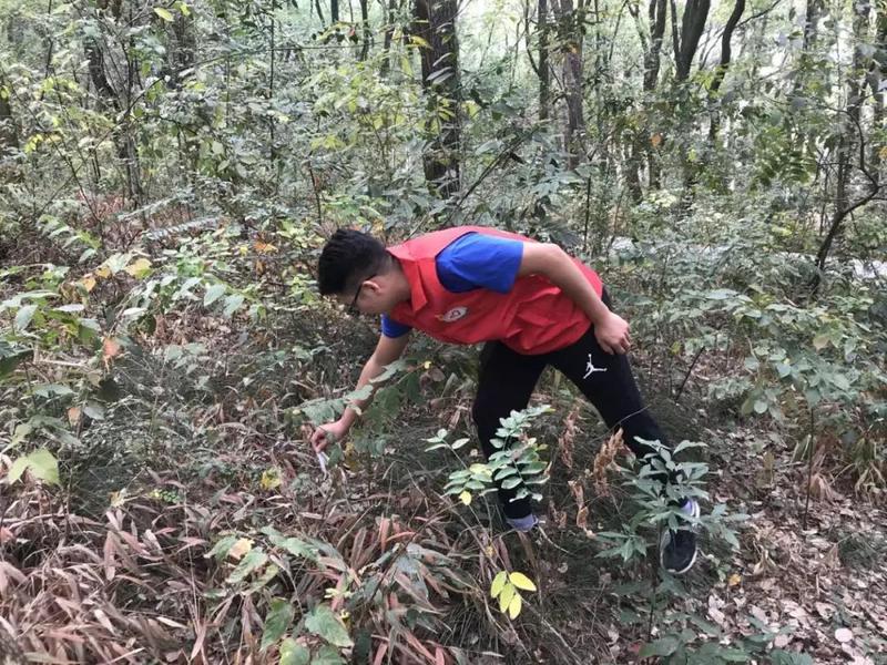 马鞍山较大,大家“兵分两路”,分区清理。大家仔细观察着路边的树林草丛,一旦看到垃圾就将其捡出放到垃圾桶内。一路上,我们发现较多的垃圾有塑料袋、饮料瓶和泡沫板。有些垃圾在树林较深处,赵小瑞老师带头进去将其捡出。最终,大家汇合后原路返回并复检了一遍。
