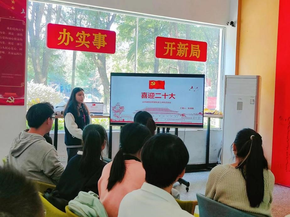 3044永利集团建筑管工供热研究生党支部于大学生活动中心展开了支部主题党日活动,活动的主题是:学习中国共产党第二十次全国代表大会精神。整个活动分为四个部分,分别是:重温入党誓词,党员讲微党课,时事讨论以及观影《领航》。