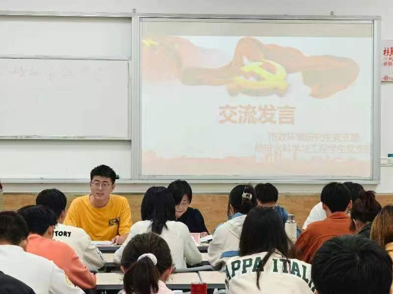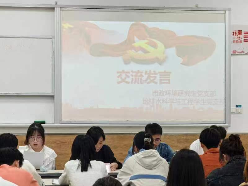为深入学习贯彻党的二十大精神,切实把市政环境工程研究生党支部、给排水科学与工程学生党支部全体同志的思想和行动统一到会议精神上来,两个党支部在土建学院党委委员、工会主席潘荣老师的带领下一起组织开展了学习党的二十大精神宣讲会。本次会议由市政环境工程研究生党支部书记倪主业同志主持。