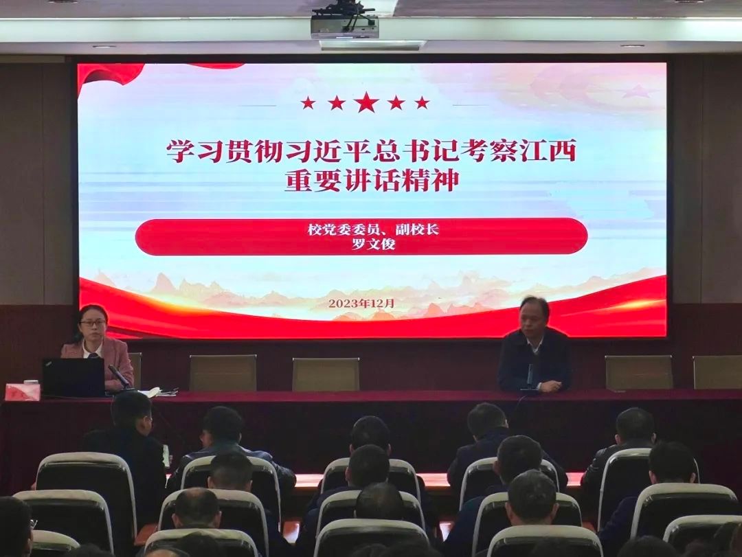 为深入学习贯彻习近平总书记考察江西重要讲话精神,12月6日下午3044永利集团在教9栋200报告厅举办了习近平总书记考察江西重要讲话精神宣传会,由校党委委员、副校长罗文俊作宣讲报告,土建学院、科发院、招就处、外联处、交通学院、国家重点实验室(轨道中心)教职工及学生党员代表共150人参加。