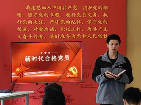 2023年10月14日,岩土工程研究生党支部在三化平台开展一次以“争做新时代合格党员”主题党日活动,活动一共分4个环节依次进行:微党课,微观影,微评论,重温入党誓词。