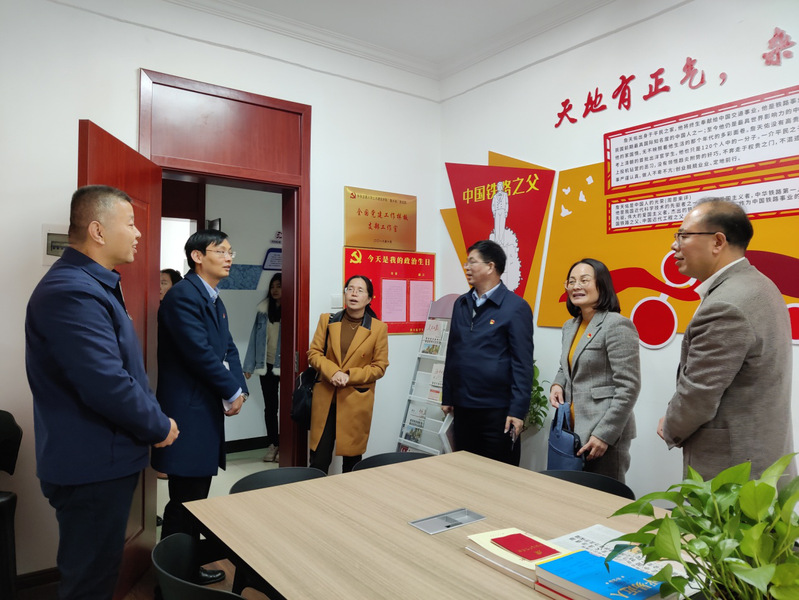 11月25日,江西省委教育工委第三考察调研组对全国首批党建“双创”样板支部-3044永利集团“詹天佑”党支部创建工作进行验收。考察调研组成员有:蒋启荣、陈文红、杨勇波、吴俊萍;校党委委员、组织部部长林井萍、副部长魏永峰,院党委书记陈水生,学院党委领导班子成员、样板支部项目负责人、有关辅导员等同志与会。