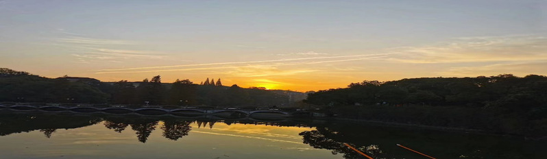 落日西去江天,晚风藏下早秋,楼上有夕阳的温度,这所校园也最是令人喜爱。我喜欢这里的山水校园,喜欢这里的醉色晚霞,就像是云朵喝醉了酒挂在了天上,每每夜幕降临,远处无子色的雾紫色的天空在氤氲的水汽中显得尤为好看。