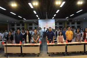 颁奖结束后,全体在场党员上台同领导老师合影留念。