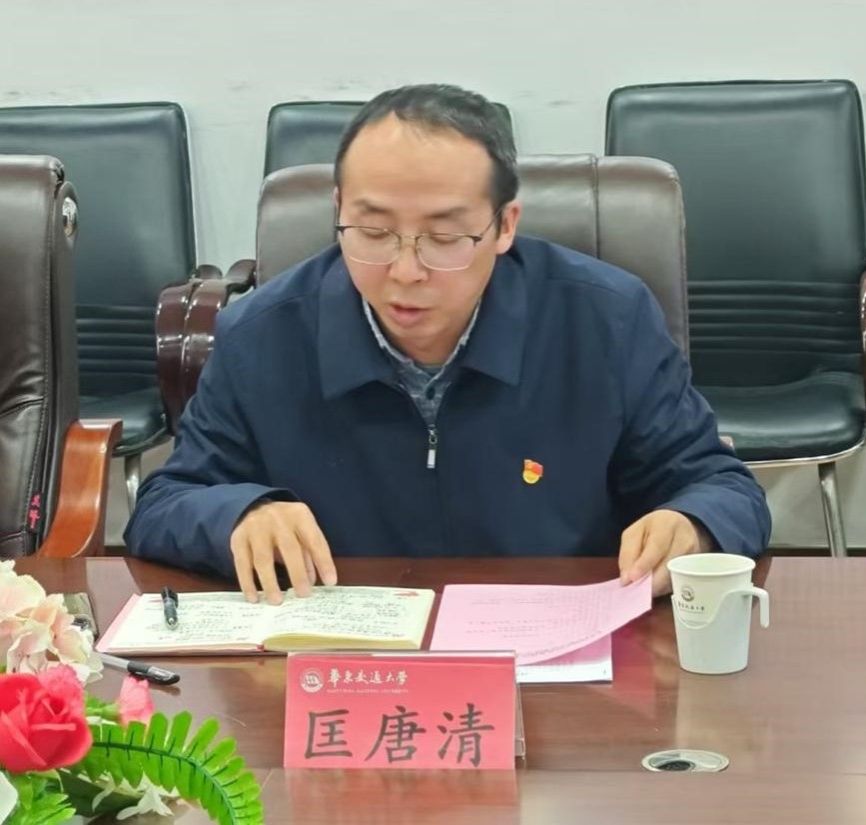 最后,机电与车辆工程学院党委书记匡唐清作点评讲话。在组织上,与会人员有着详细清晰的议程,进行了充分的深度学习和准备;在形式上,内容丰富规范,提纲体现习近平文化思想发展脉络和丰富内涵;在应用上,与会人员在学习的同时与工作进行结合发言,以理论思想指导工作实践。