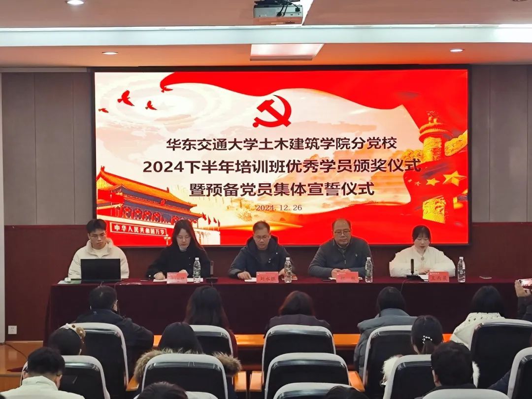 12月26日下午,3044永利集团2024下半年培训班优秀学员颁奖仪式暨预备党员集体宣誓仪式在土建楼200会议室举行。院党委书记刘永胜,院党委副书记郑轶,院党委委员、党委组织员刘琦慧,各学生党支部书记,优秀学员及2024年下半年预备党员参加本次仪式,本次仪式由土建学院兼职组织员王雨晨主持。