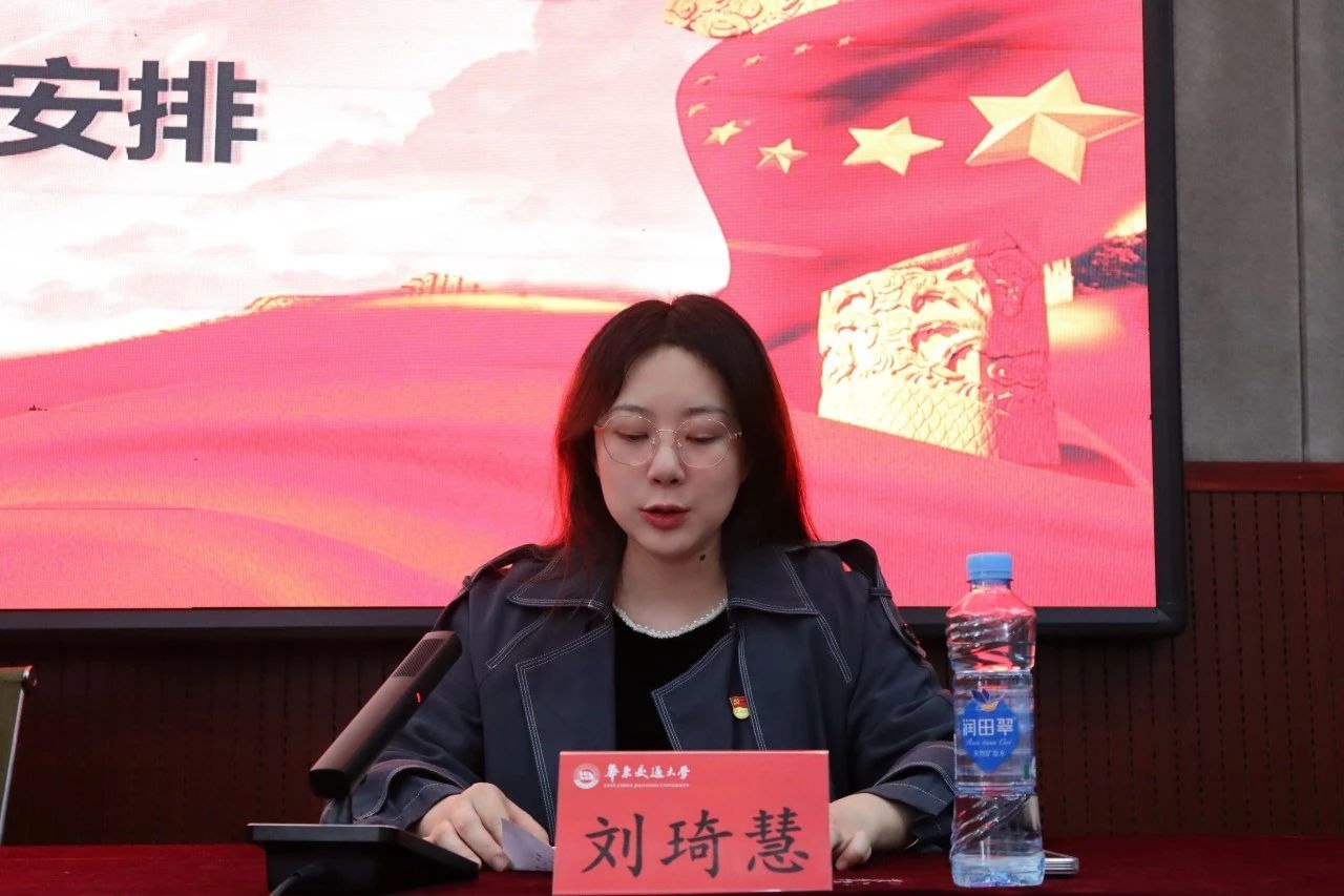 院党委委员、党委组织员刘琦慧对全体入选参训学员表示欢迎与祝贺,并对此次党校培训班的教学安排和考核要求进行介绍。她提到本次培训班将采取线下教学模式,通过理论学习和实践体验两个环节进行考核与评优,要求每位学员严格落实"三个一"要求。她希望各位学员通过此次培训深化对党的理解与认识,在理论学习和实践锻炼中提升自我,认真对待考核,顺利结业,为成为合格的共产党员打下坚实基础。