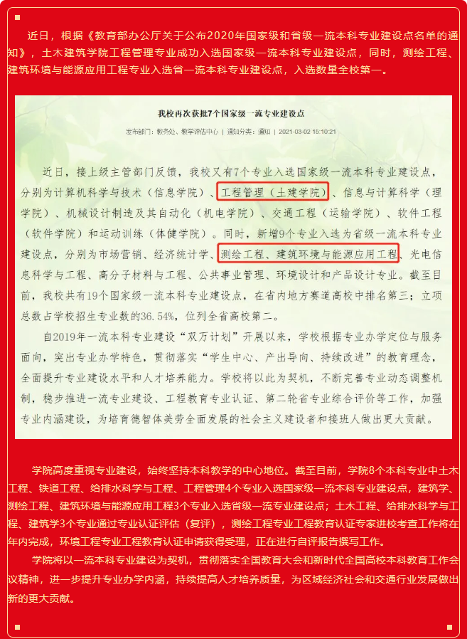 喜报 | 土建学院新增1个国家级、2个省级一流本科专业建设点