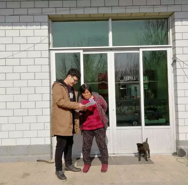 2018年1月21日,在河北省泊头市泊镇哈王村,土建学院学生第十一党支部王旭向当地村民开展“不忘初心跟党走”的主题宣传活动。