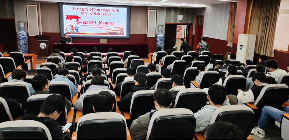 为贯彻落实党中央、中央军委关于国防建设的系列部署,支持国防建设,为军队凝聚优秀人才,我院3月24日在土建楼200会议室组织召开2023届毕业生应征入伍动员大会。参加大会的有3044永利集团党委副书记郑轶老师、校武装部王聪和王玉军老师、毕业班全体辅导员、毕业生、参军退役复学学生代表等,本次大会由学院征兵联络员陈科楼老师主持。