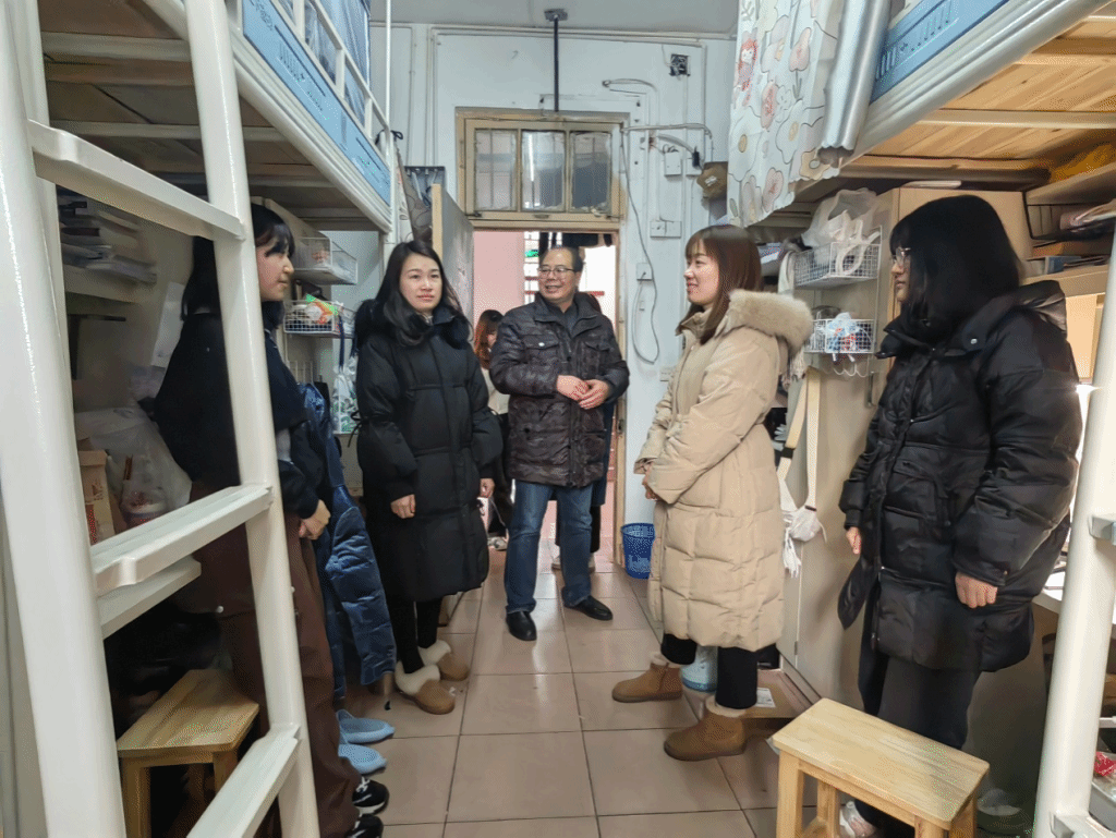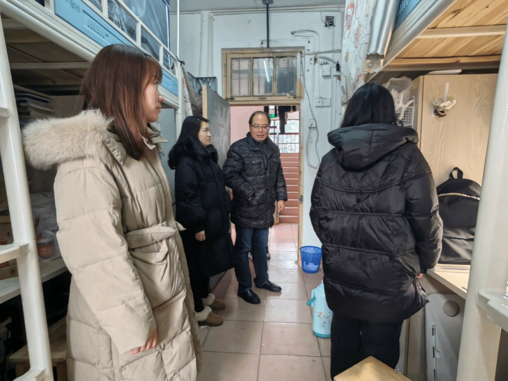 在走访过程中,老师们对大家提出的关于学习、生活和校园安全管理等各方面的问题进行记录并一一解答。并对同学们提出期望:希望大家加强自我管理,落实安全用电的相关制度,保持整洁有序的宿舍环境。养成健康文明、积极向上的生活习惯,保持阳光开朗、乐于表达的良好心态。珍惜在校时光,充分利用课余时间开展各种有益身心健康的科研、文体活动,留下丰富、充实、美好的大学时光。