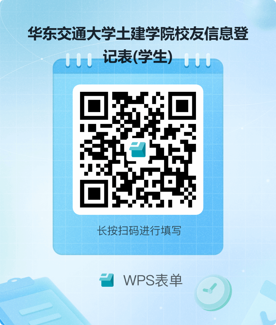 学院校友会愿成为连接你我的温暖纽带——这里没有旁观者,唯有同行人。为凝聚力量、续写华章,我们正在完善校友信息库,诚挚邀请您扫码登记,加入这个属于所有土建人的精神家园。让我们跨越山海、聚星成火,共同筑就未来的崭新篇章。
