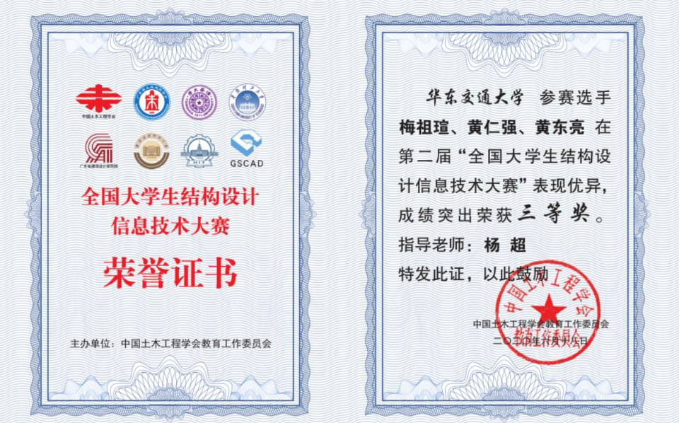6月30日,“第二届全国大学生结构设计信息技术大赛”获奖名单揭晓,永利集团3044土木工程学院3支参赛队伍在结构工程教研室杨超博士的指导下获三等奖3项,在此次竞赛中,我校学子以优异的成绩为我校争得了荣誉。本次竞赛从发布竞赛通知到作品提交,历时234天,共有来自清华大学、浙江大学、天津大学等341所高校的2140支队伍参加,提交作品888份。