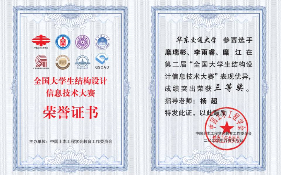 此次竞赛适逢疫情,在疫情防控的特殊时期,参赛选手和指导老师并没有因此松懈,积极地学习相关理论知识,通过线上培训以及讨论不断改进方案,最终在“全国大学生结构设计信息技术大赛”为我校赢回荣誉。相信在花椒学子以及老师的不懈努力下,花椒会越来越好,赢回更多的荣誉!