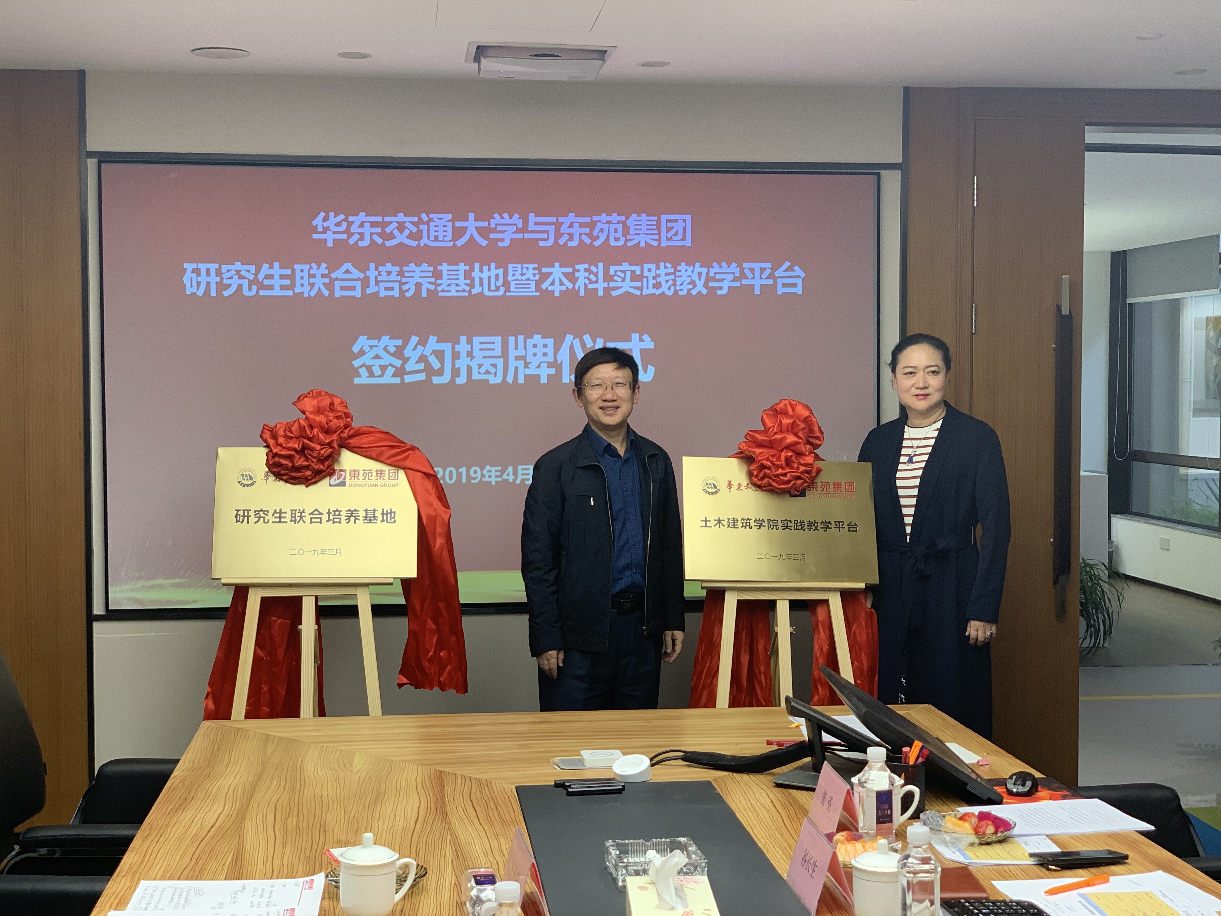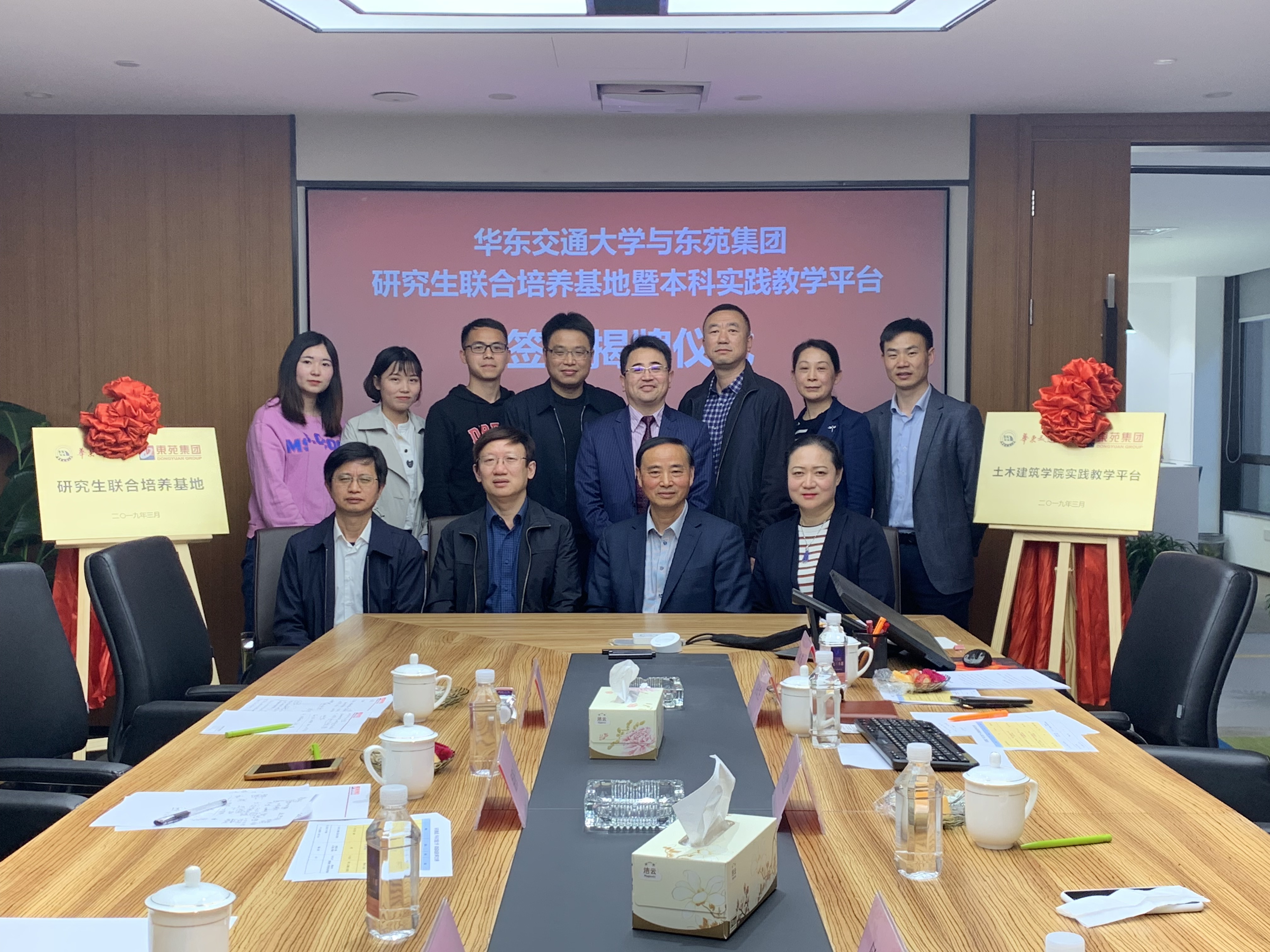 为提高教育质量,开展产学研用合作,务实提升我校研究生实践创新能力和培养高素质应用型本科人才,4月13日,研究生院副院长徐平生、土建学院常务副院长胡锋平、副院长耿大新及工程管理系主任王永祥等利用周末带领首批土建学院17级硕士研究生赶赴上海,与东苑集团签署研究生联合培养基地协议和本科实践教学平台协议并举行揭牌仪式。