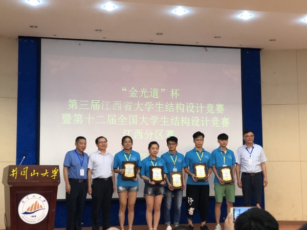 我校代表队在上届的建筑结构大赛中斩获一等奖两项,二等奖一项。我院代表队在此次竞赛中全力以赴,克服重重困难坚强奋进,在45支来自江西各高校的队伍中脱颖而出,再次斩获一等奖二项,二等奖一项的好成绩,为我校又一次赢得了荣誉。