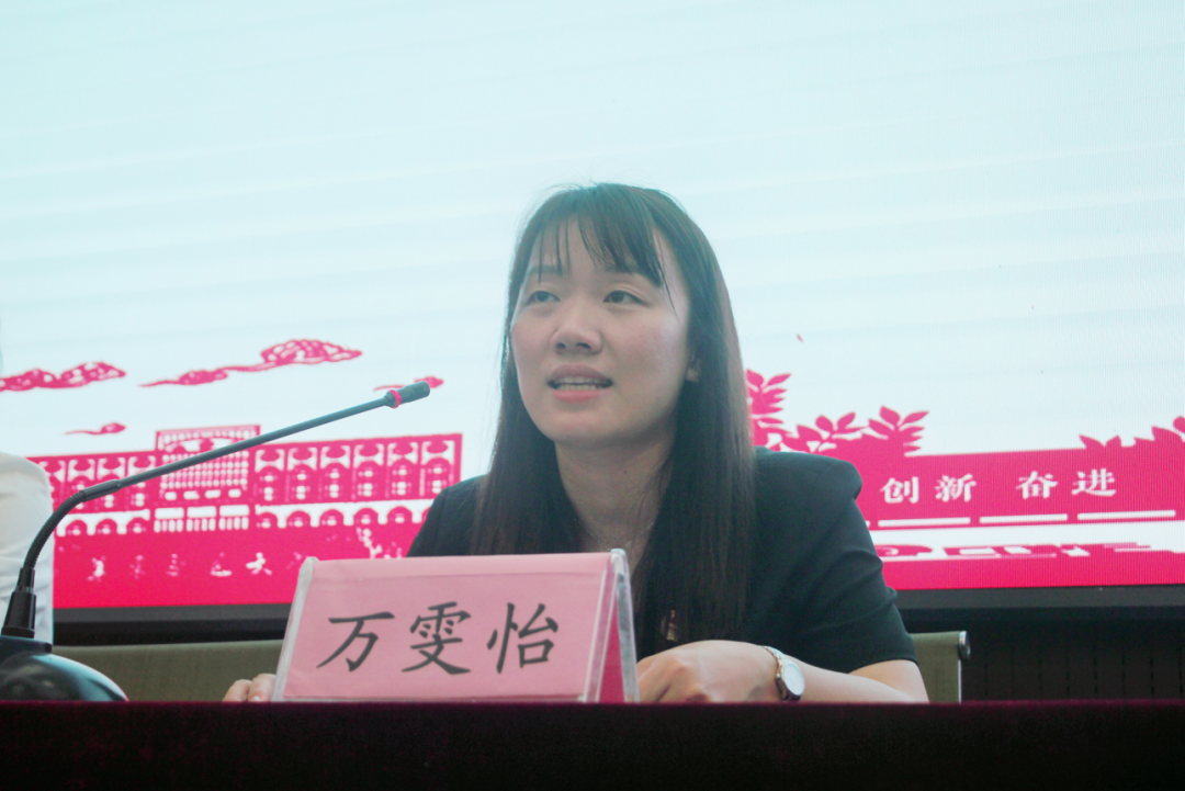 院团委书记、学工办主任万雯怡老师做总结发言,她希望同学们在今后的学习中,继续保持理想,保持执着,修身立志,团结协作,不断学习,努力使自己成为一名品格完善、自强自立的团员,努力实现自己的理想和人生价值。并提出三点希冀: