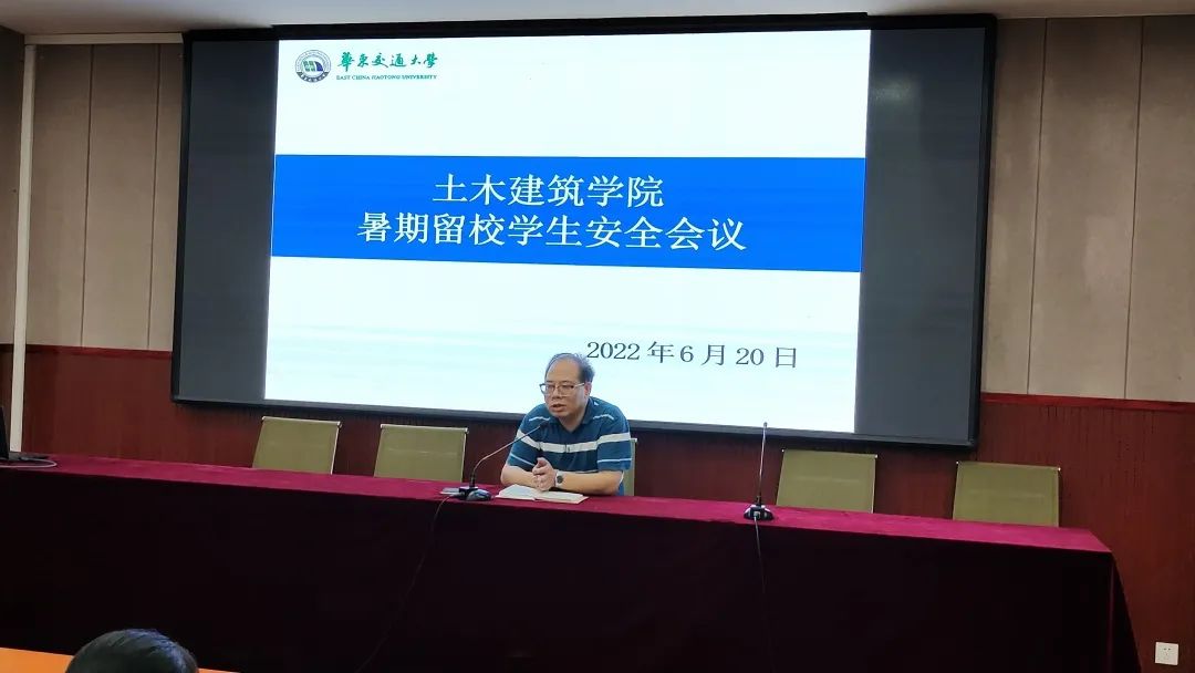 六月的夏天肆意且热烈,六月的风匆匆地将同学们带入了假期。安全是快乐假期的基础。为了让学生们度过一个多姿多彩、愉快充实的暑假并且以积极向上的姿态投入新的学年中,2022年6月20日,我院于土建楼200会议室召开暑期留校学生安全会议。党委副书记郑轶出席此次会议,团委书记万雯怡、学工办副主任毛丽素、相关辅导员及留校同学们参加了本次会议。