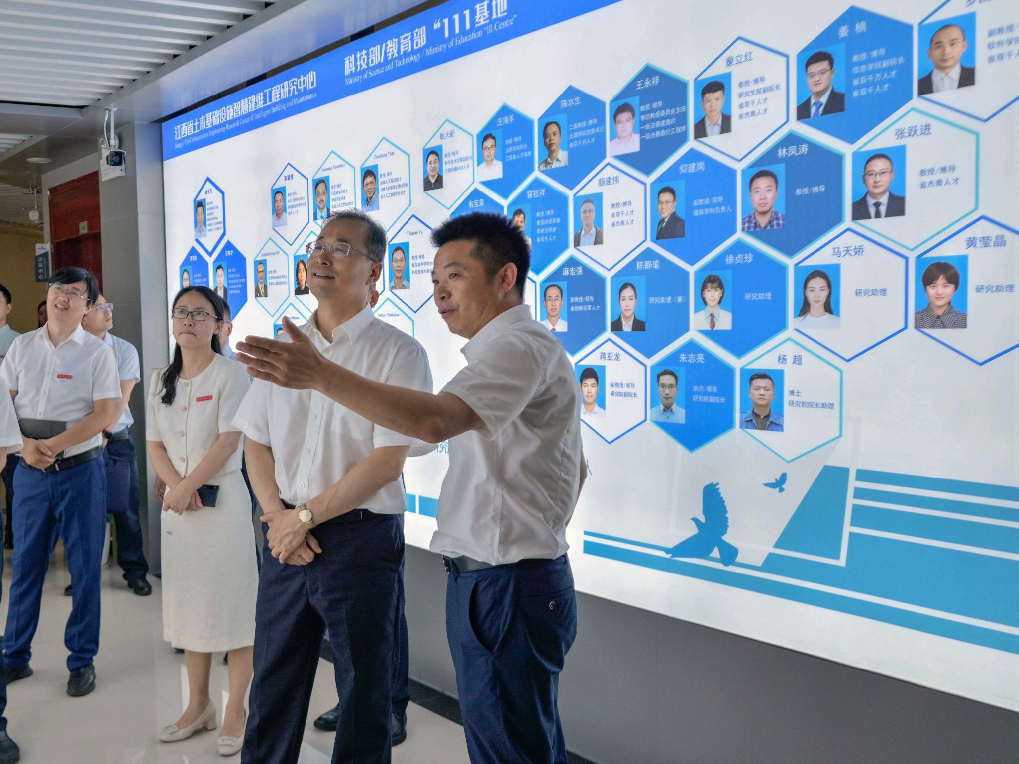 孙洪山实地调研了国家重点实验室、学科创新引智基地、党建提升工程指挥调度中心,深入了解了学校在科学研究、智慧交通、党建品牌创建等方面取得的成效。