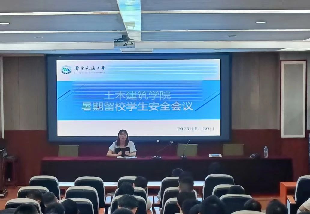 为了确保学生们度过一个多姿多彩、愉快充实的暑假,学院高度重视留校学生暑假安全工作。6月30日,我院于土建楼教9栋200会议室分别召开了本科生、研究生暑期留校学生安全会议。党委副书记郑轶出席此次会议,学工办主任、团委书记万雯怡、相关辅导员及留校同学们参加了本次会议。