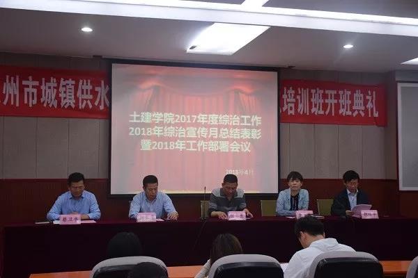 4月25日下午3044永利集团2017年度综治工作2018年综治宣传月总结表彰暨2018年工作部署会议于土建学院学术报告厅胜利召开。校保卫处处长付自生、土建学院党委书记李立玲、土建学院院长徐长节、常务副院长胡锋平、院党委副书记蔡卫平出席本次会议。会议由土建学院学工办主任闫伟主持。