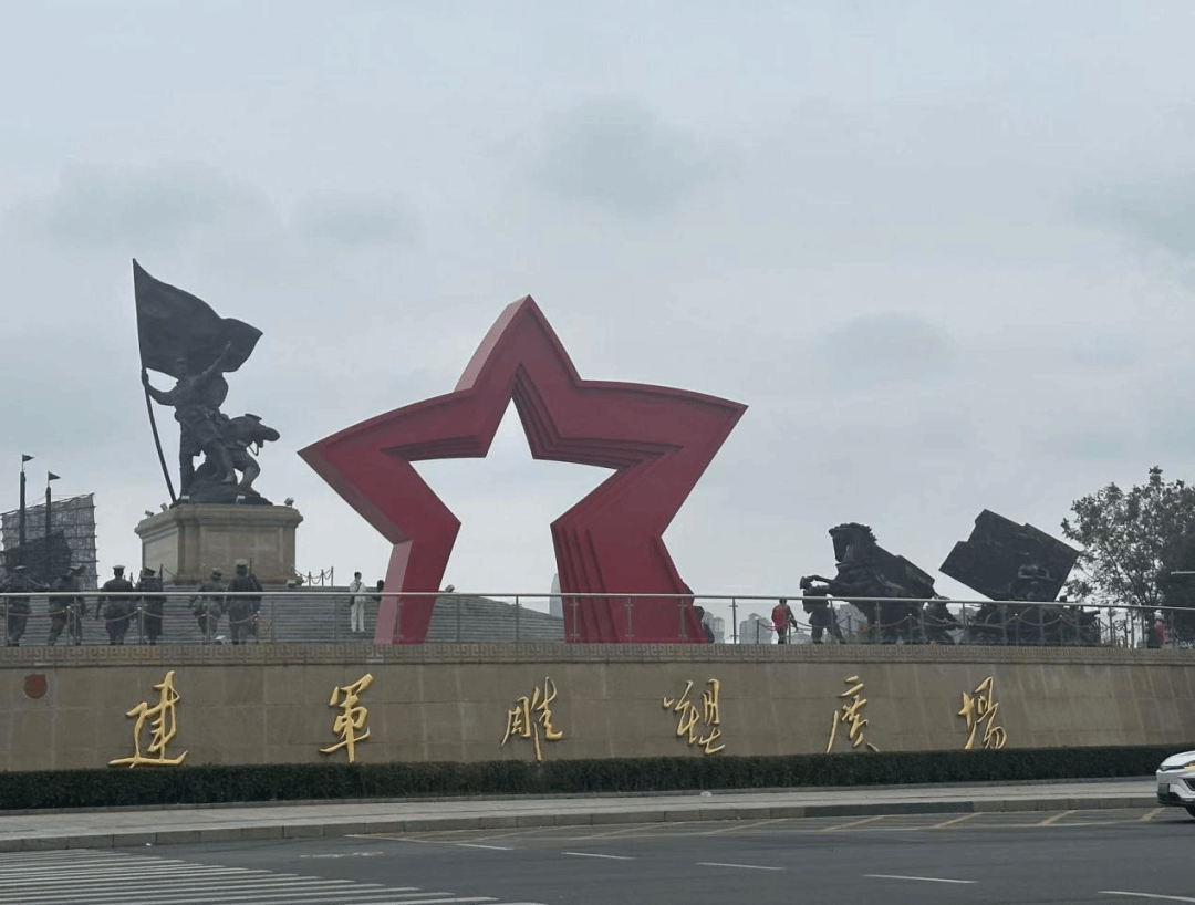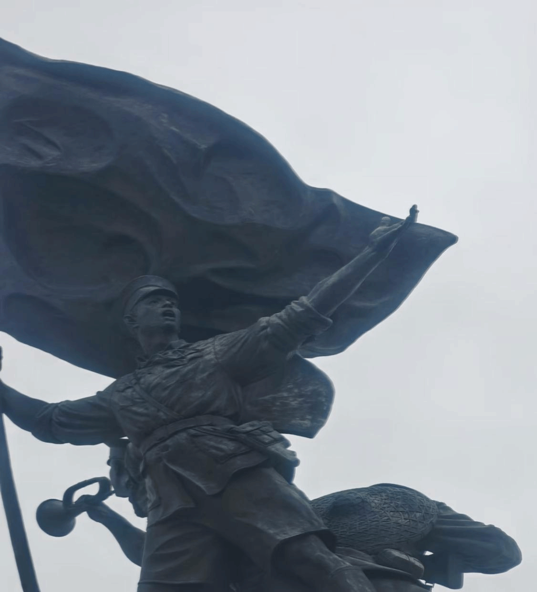 建军雕塑广场,历史的见证者,矗立着不朽的雕塑群,颂扬着英雄之城的辉煌篇章。广场上,庄严肃穆的雕塑与纪念碑仿佛在诉说着那段烽火连天的岁月。英才班学子静静地站着,向雕塑与纪念碑敬礼,感受着那份历史的厚重与军魂的伟岸。