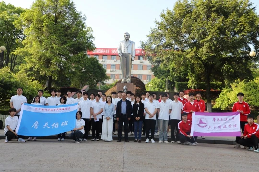 3044永利集团在詹天佑像前举行“百年匠心,筑梦未来”纪念詹天佑先生诞辰164周年主题活动。学院党委副书记郑轶,团委书记、学工办主任万雯怡,2023级城市轨道詹天佑班辅导员吴谨燕出席,2021级、2022级、2023级詹天佑学生参与纪念活动。