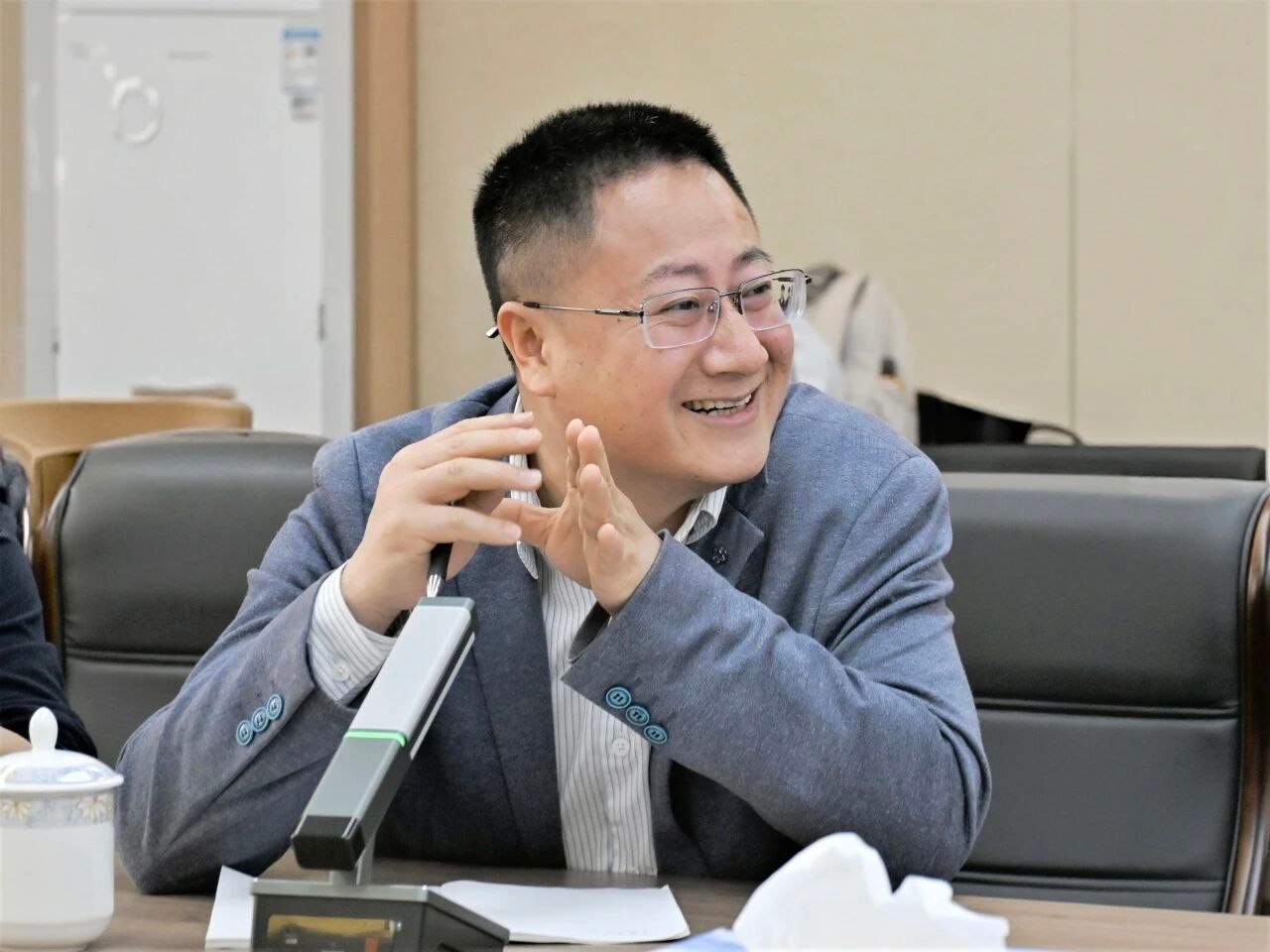 此后,庄海洋院长及学院青年教师与孙宏磊教授围绕本次讲座核心研究领域展开专题学术交流。双方针对软土地基处理技术在不同工程场景下的适用性、高含水量泥浆绿色处置技术的产业化前景,以及校企产学研协同创新模式等内容进行深入研讨,为新技术研发与工程转化奠定了良好基础、描绘了发展愿景。