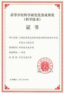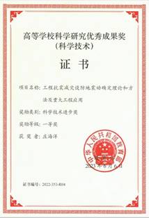 6月20日,我院庄海洋教授收到教育部颁发的高等学校科学研究优秀成果奖(科学技术)获奖证书,本人作为第4完成人参与的“工程抗震减灾设防地震动确定理论和方法及重大工程应用”项目荣获科学技术进步奖一等奖。